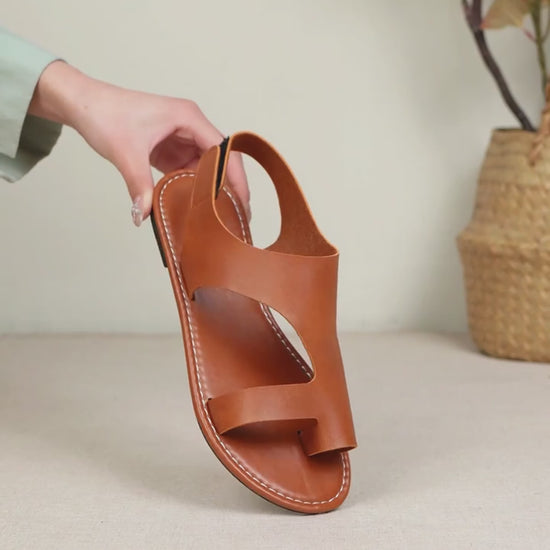 Sandalias planas con anilla en el dedo del pie de cuero PU