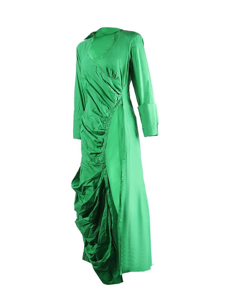 Característica: color sólido, manga larga, cuello en V, fruncido, bodycon, dividido, tops largos.