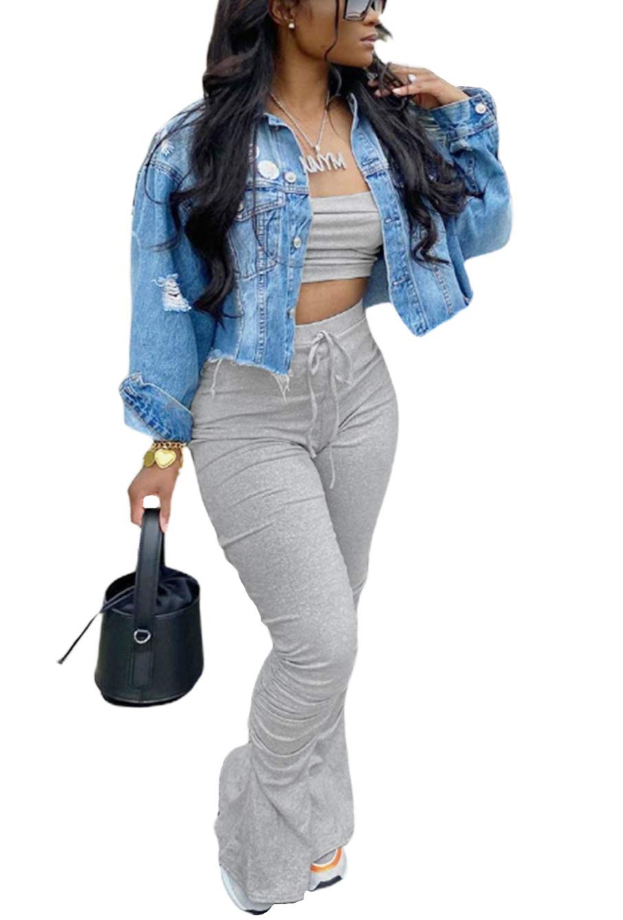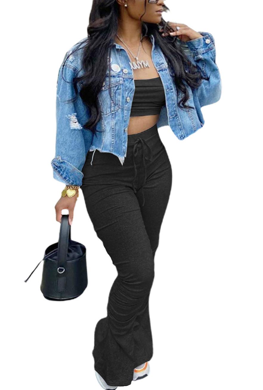 Tops cortos de dos piezas con hombros descubiertos y pantalones largos fruncidos