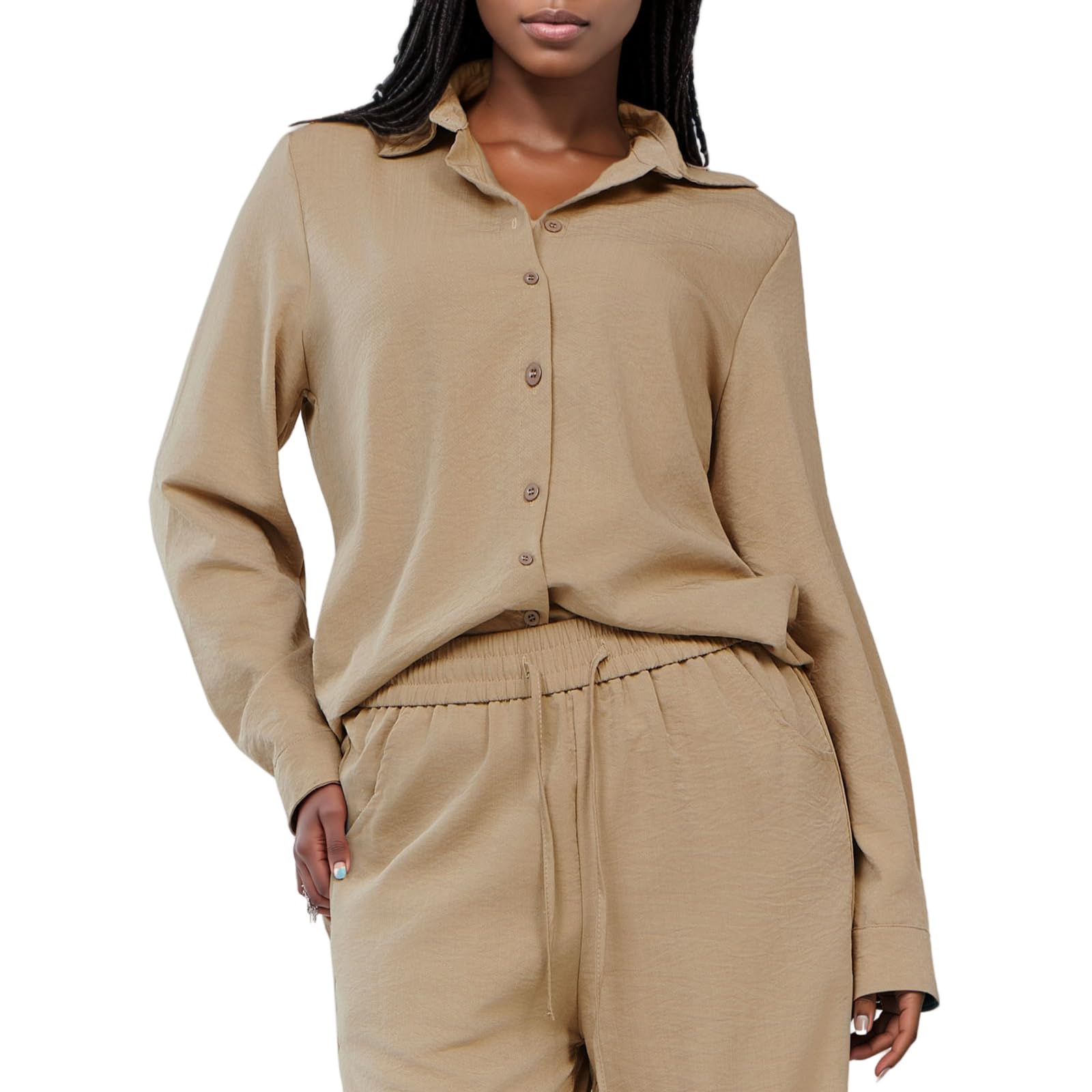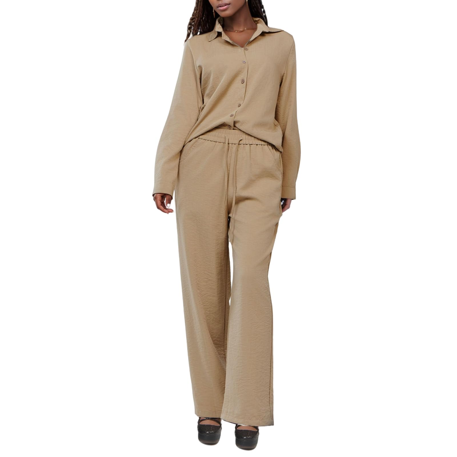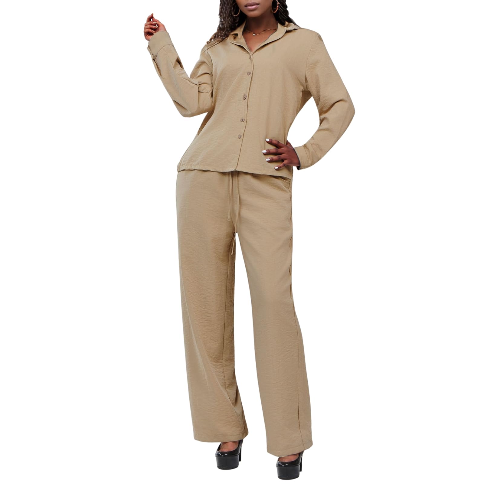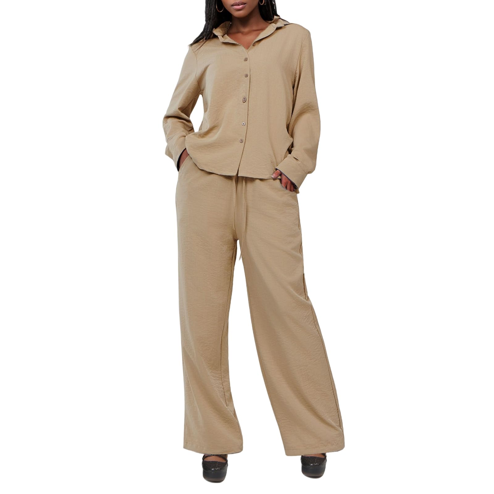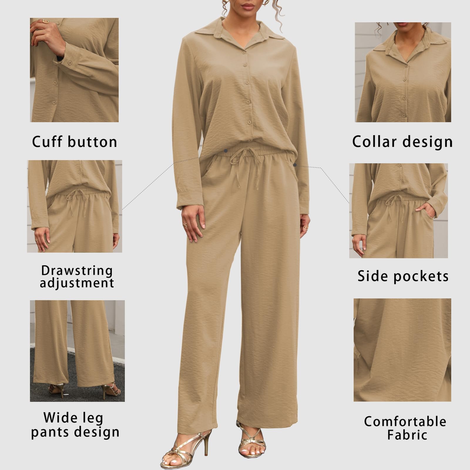 | Women's Linen 2 Piece Outfits | Khaki | Large | 3 |