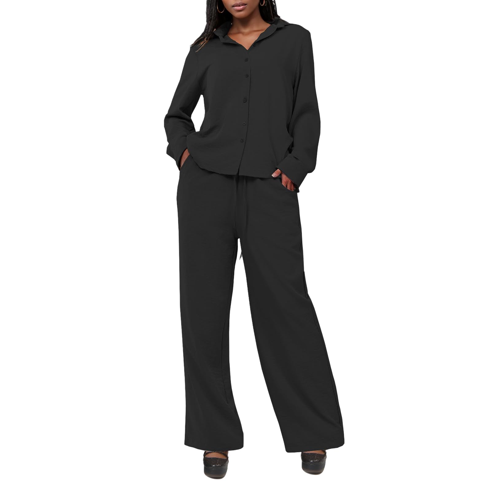 | Women's Linen 2 Piece Outfits | Black | Large | 2 |