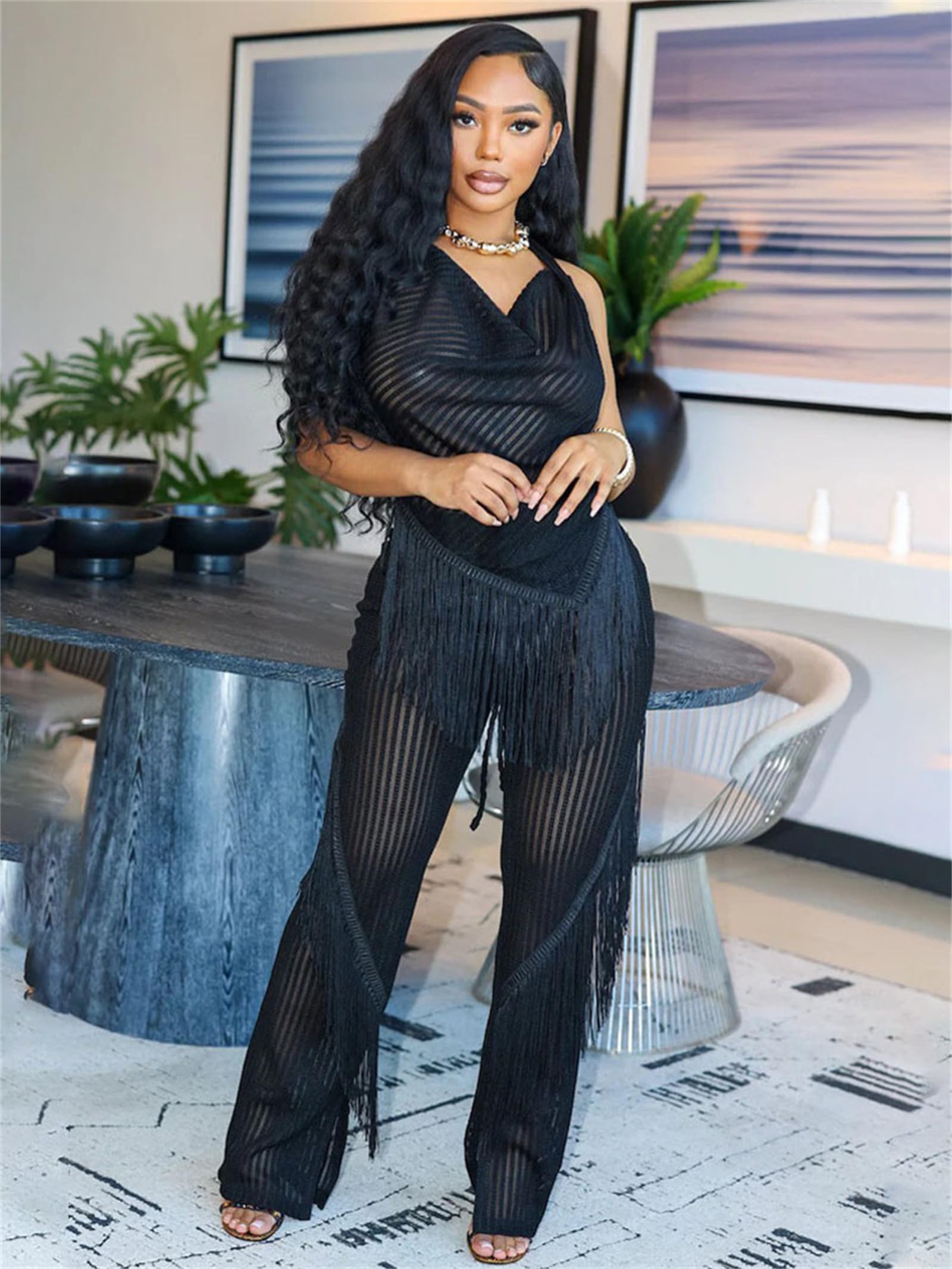 | women sexy 2 piece pant set | Black | Large | 2 |