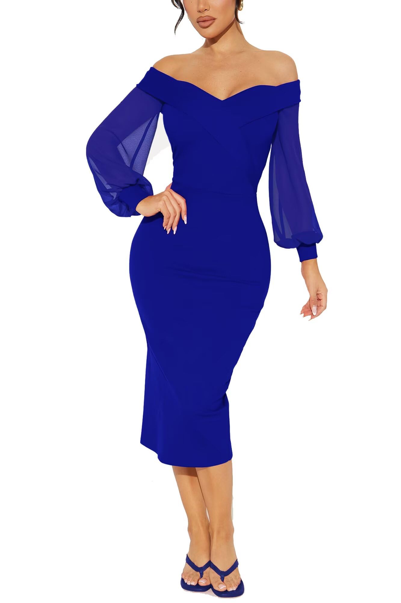 | Puff Long Sleeve Formal Dresses | Blue | X-Large | 4 |