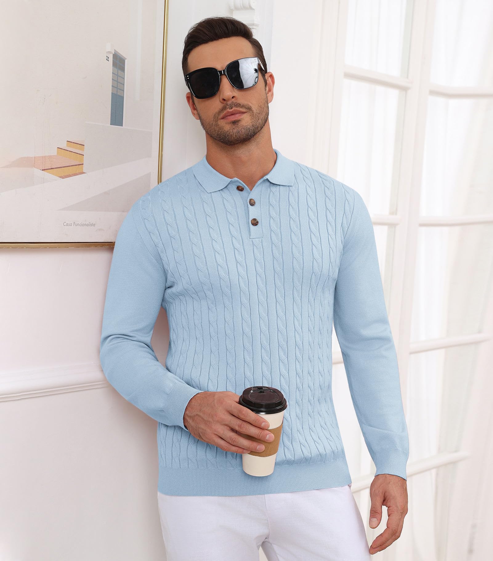 | Men's Polo Sweater Soft Warm Casual | Sky Blue | Large | 5 |