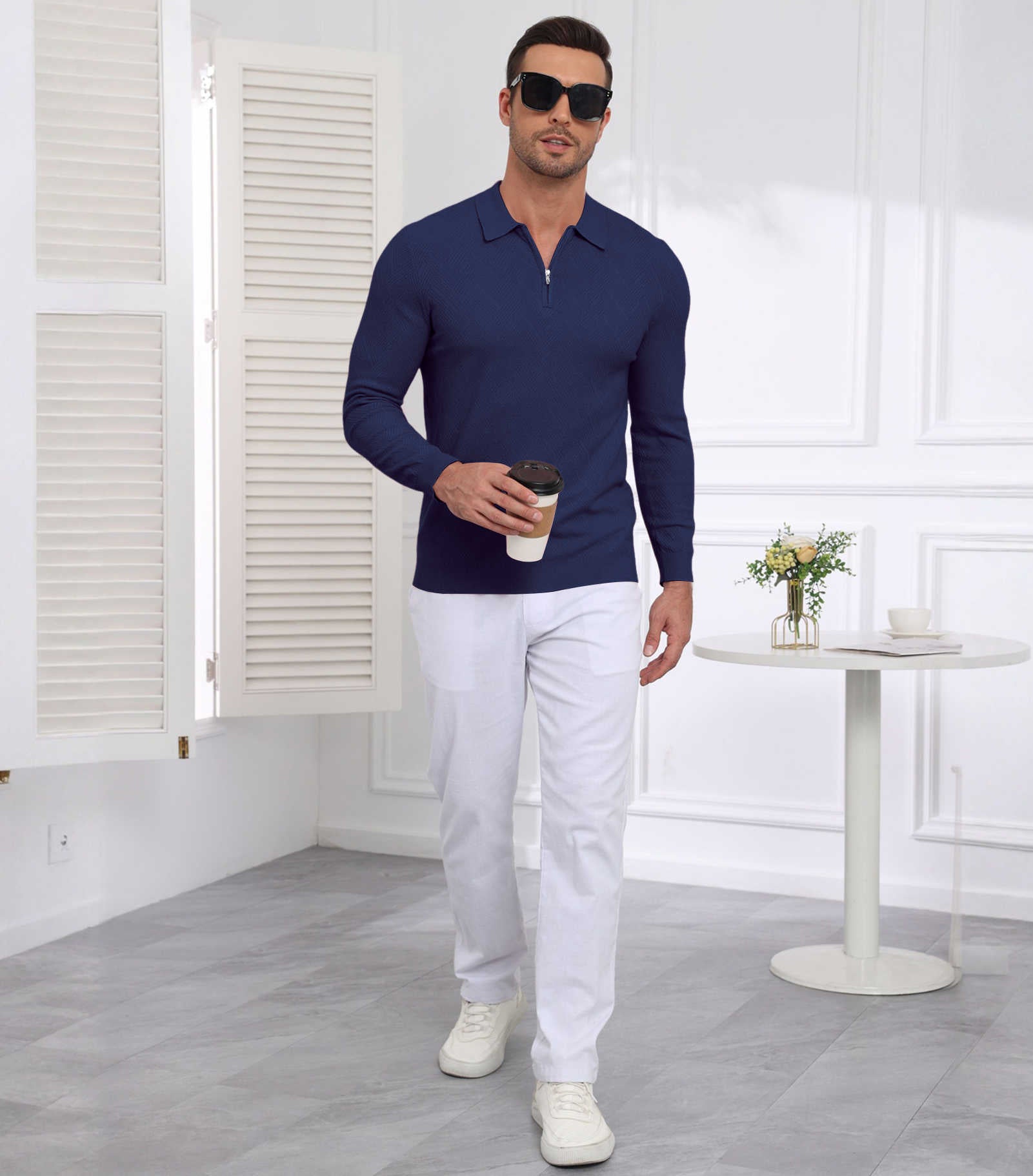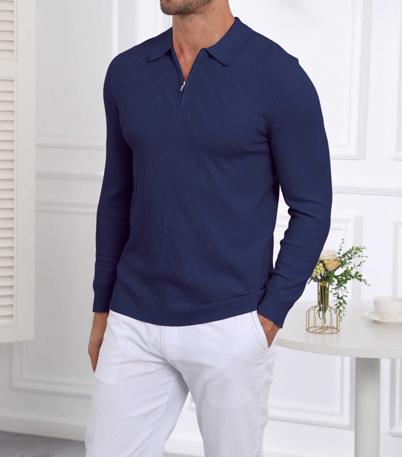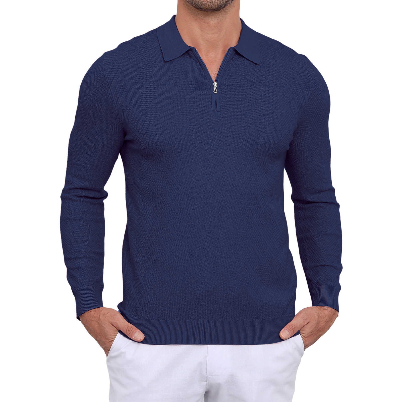 | Mens Sweater Polo Slim Fit | Navy Blue | Large | 1 |