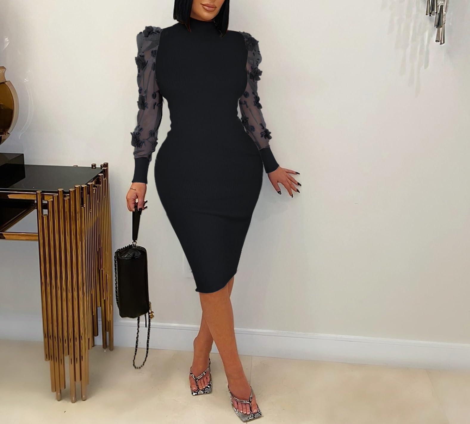 | Women Lace Long Sleeve Midi Dress | Black | Small | 4 |