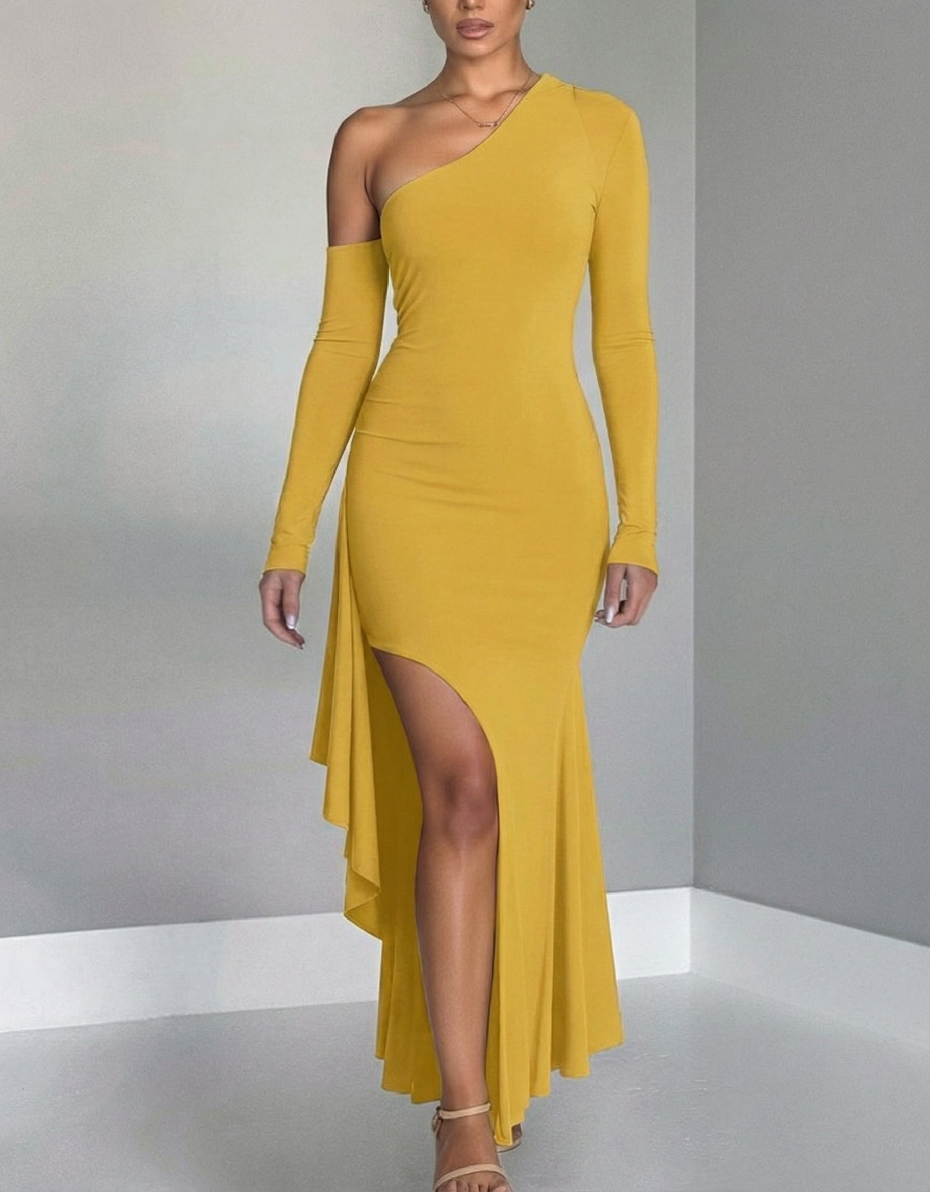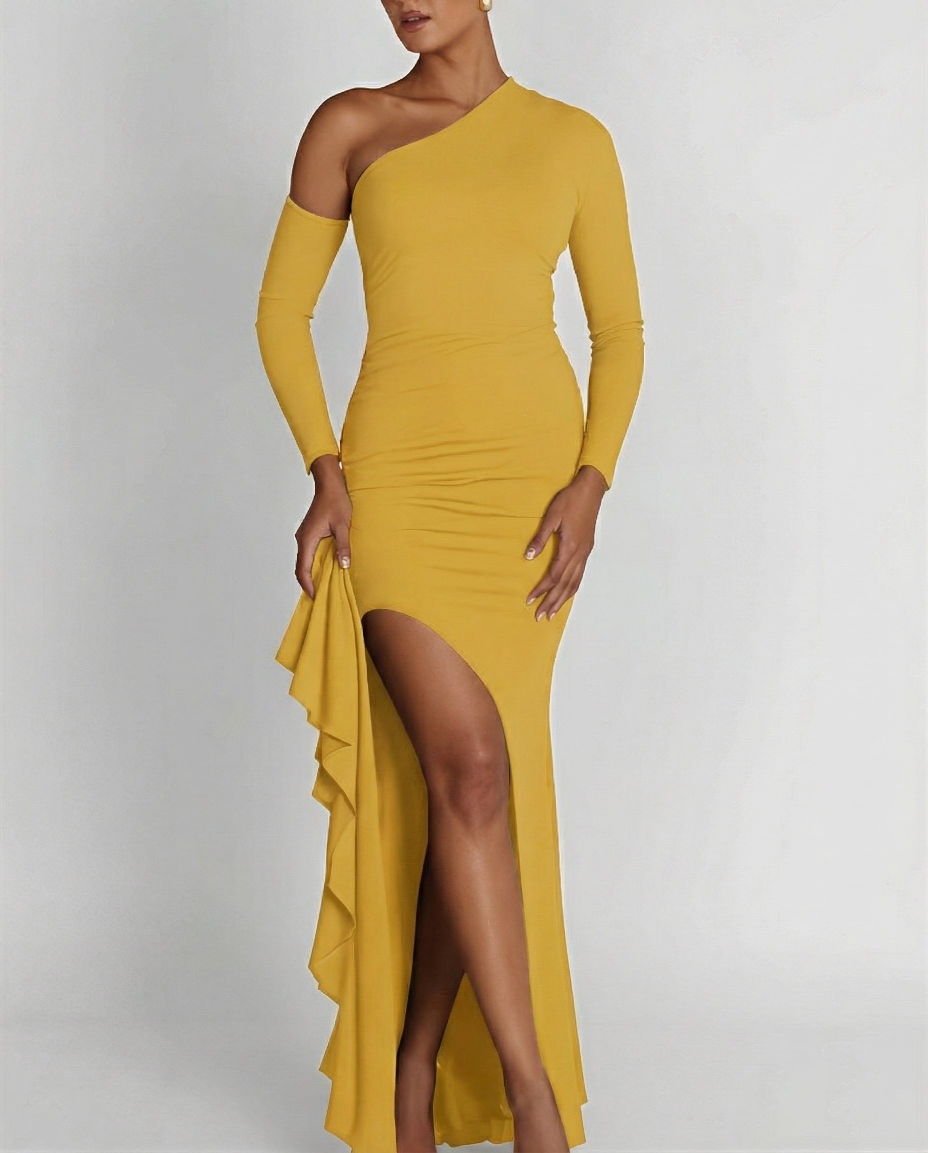 | One Shoulder Long Sleeve Slit Dress | Yellow | Small | 4 |