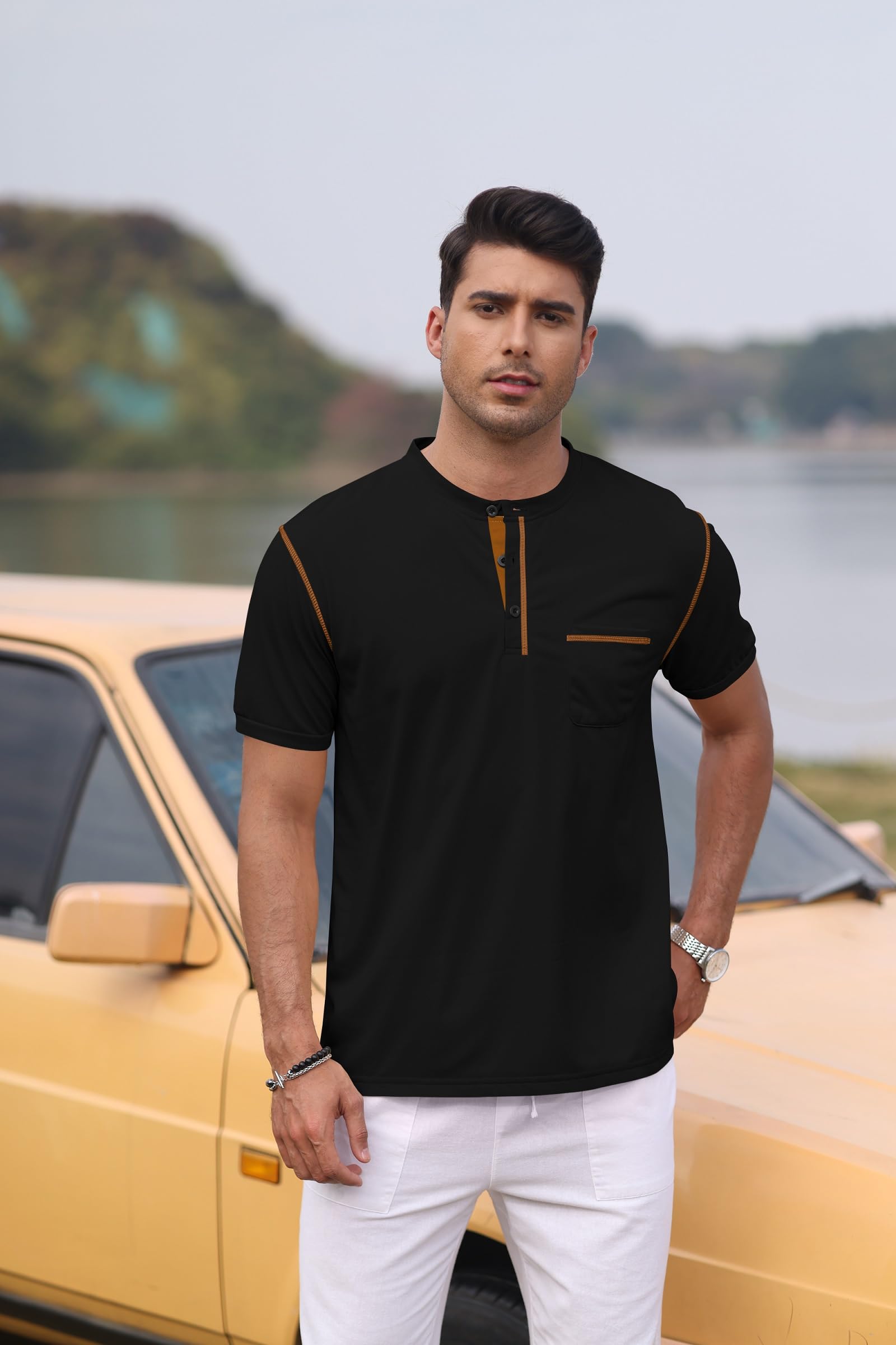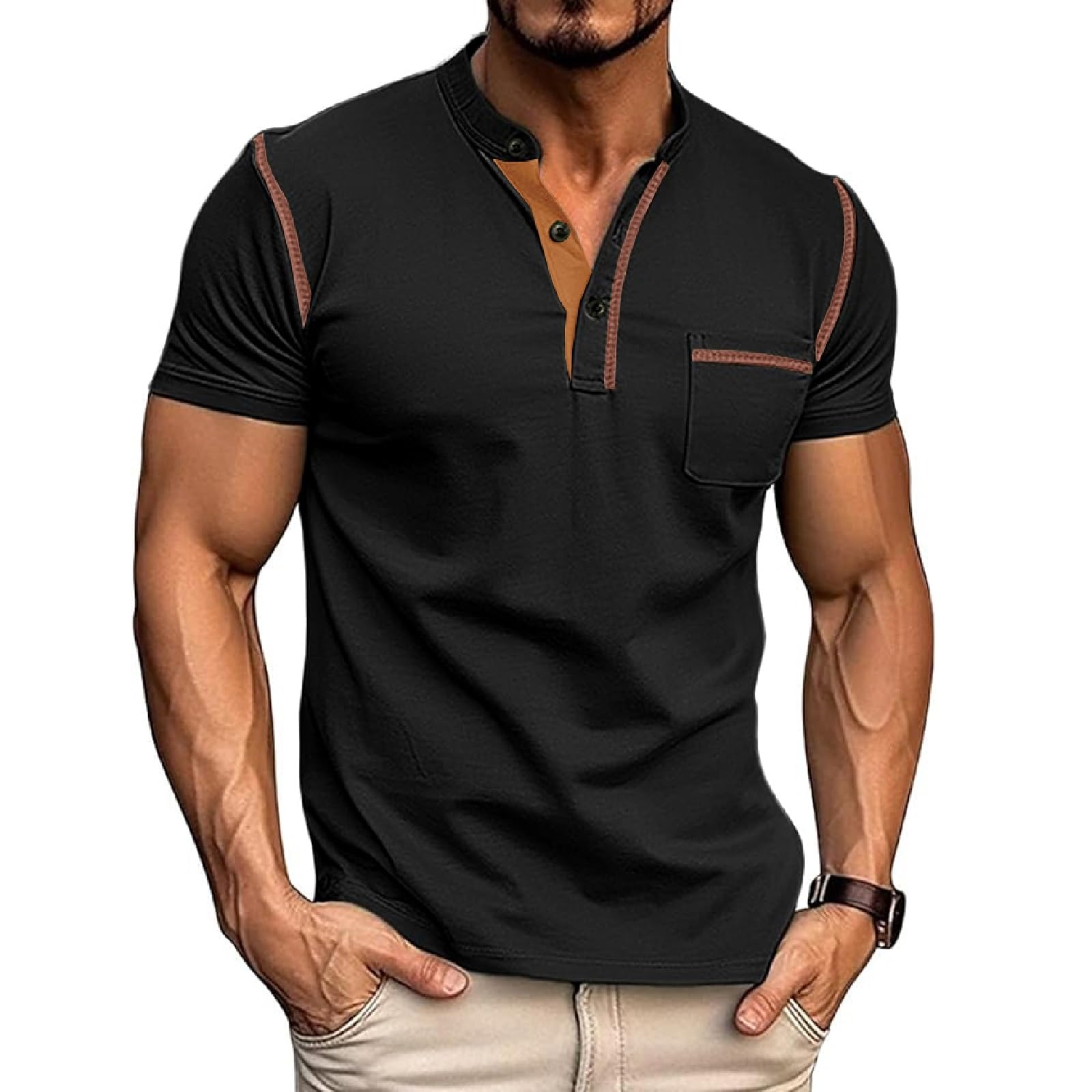 | Mens Henley Shirts | Black | 3X-Large | 2 |