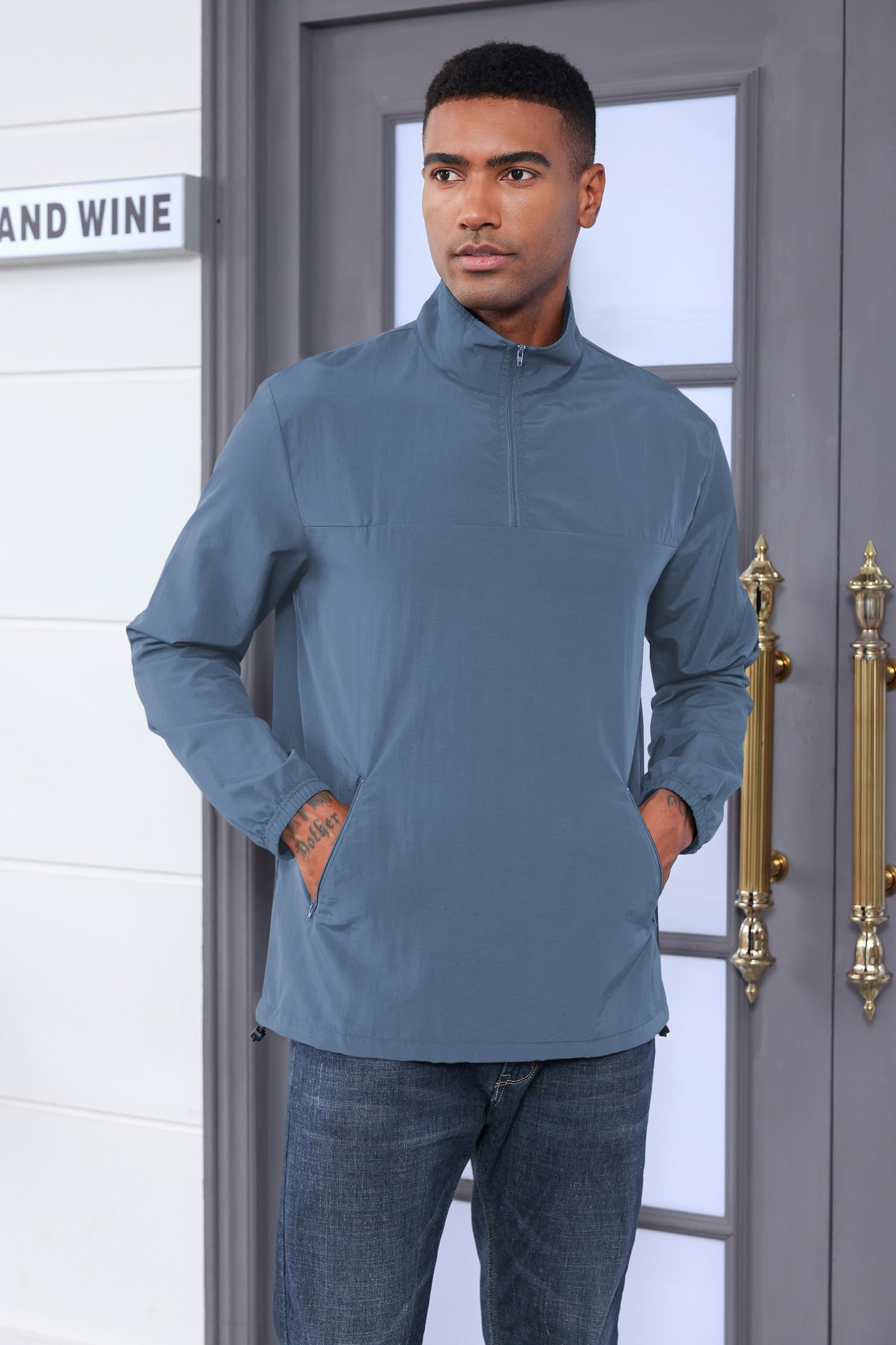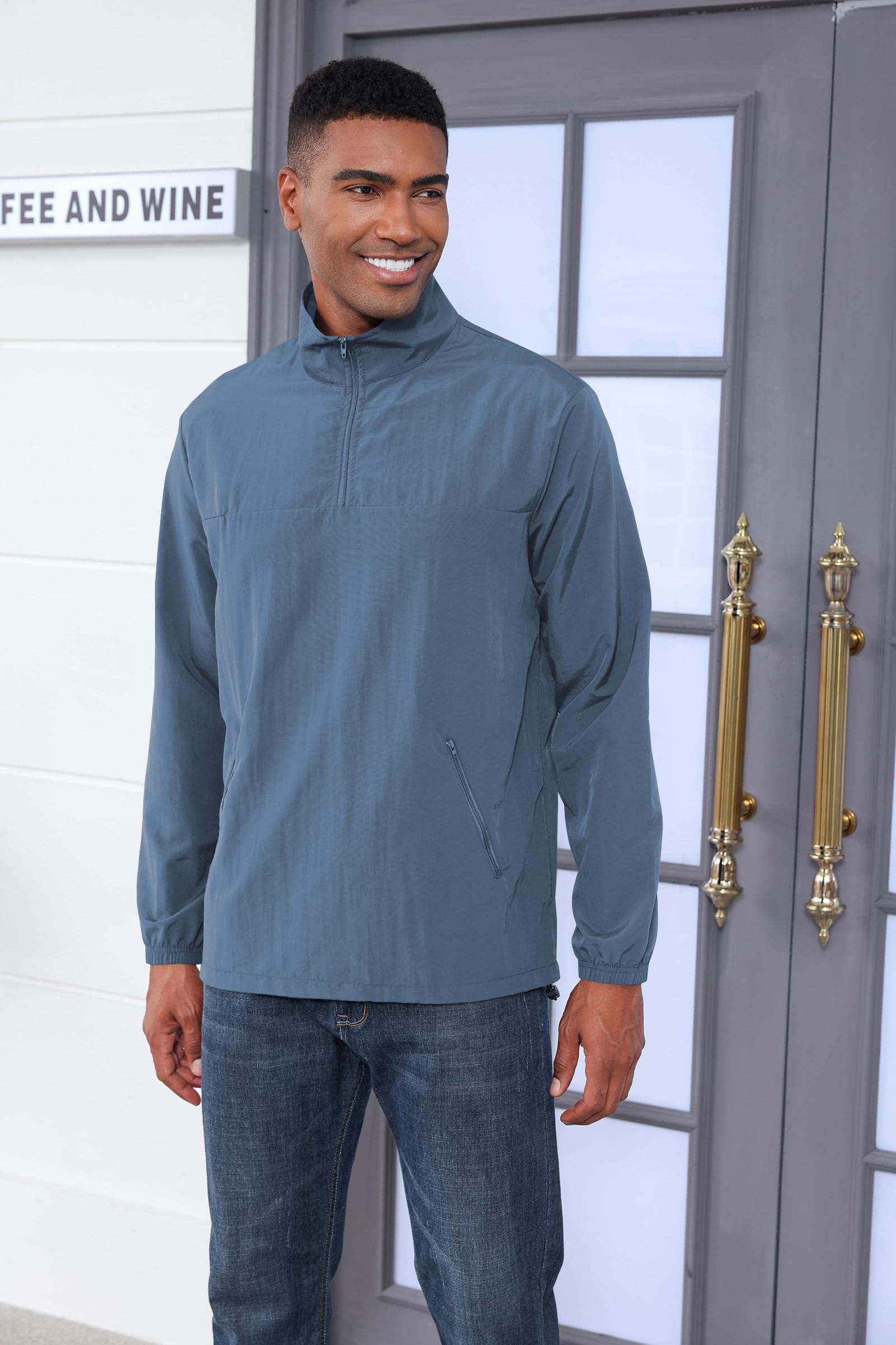 | Men's Casual Quarter Zip Pullover | Misty Blue | Large | 4 |