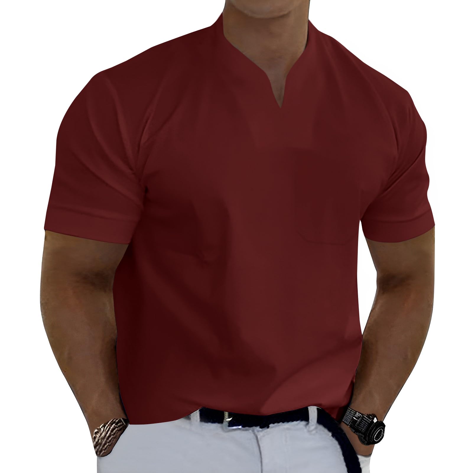 | Men Gentlemans Business T Shirt | Wine Red | 3X-Large | 5 |
