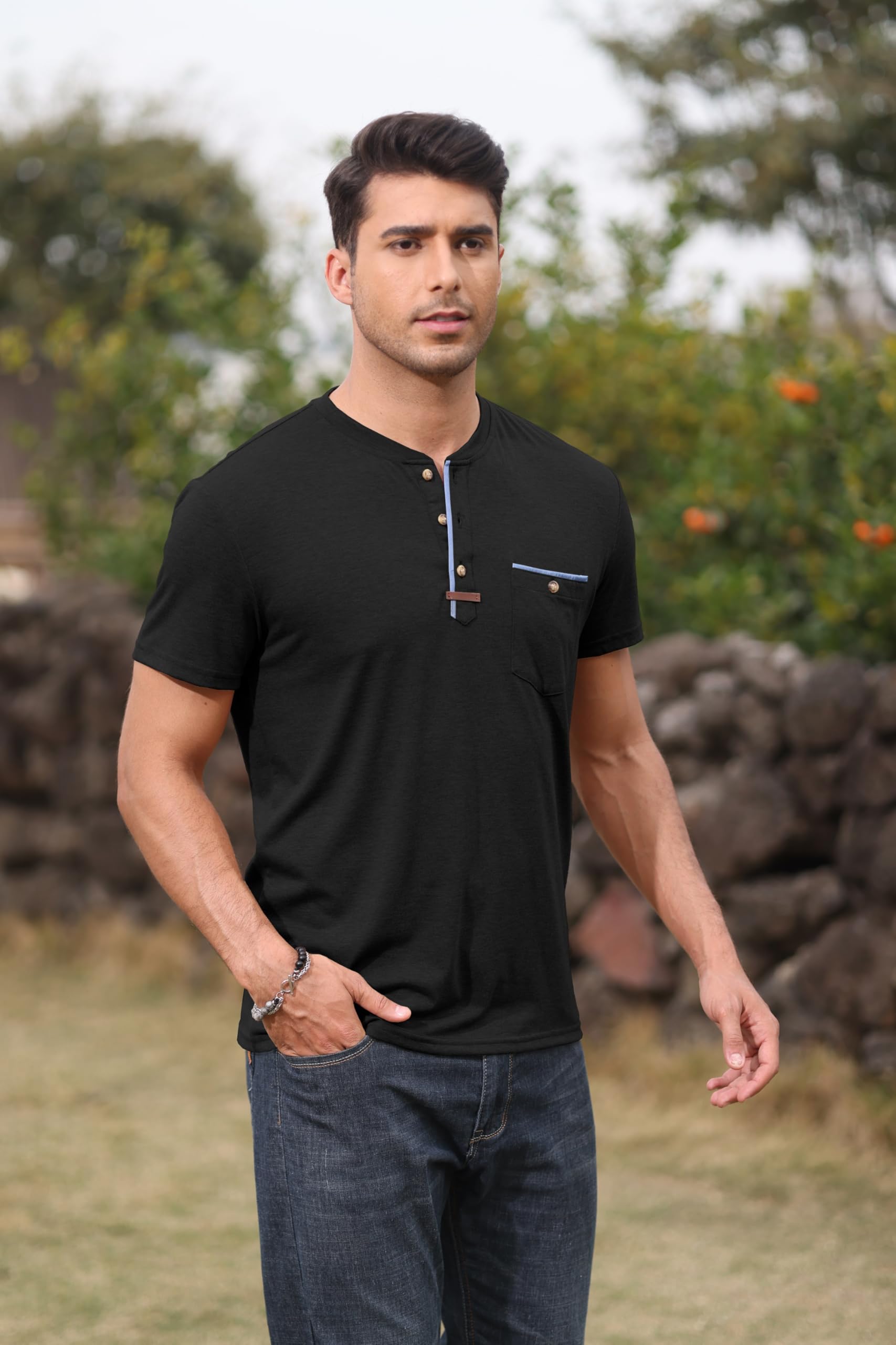 Mens Henley Shirts Black 3X-Large 2