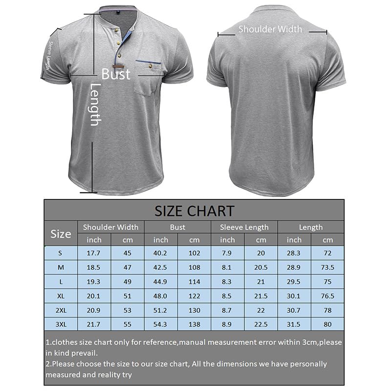 Mens Henley Shirts Grey 3X-Large 3