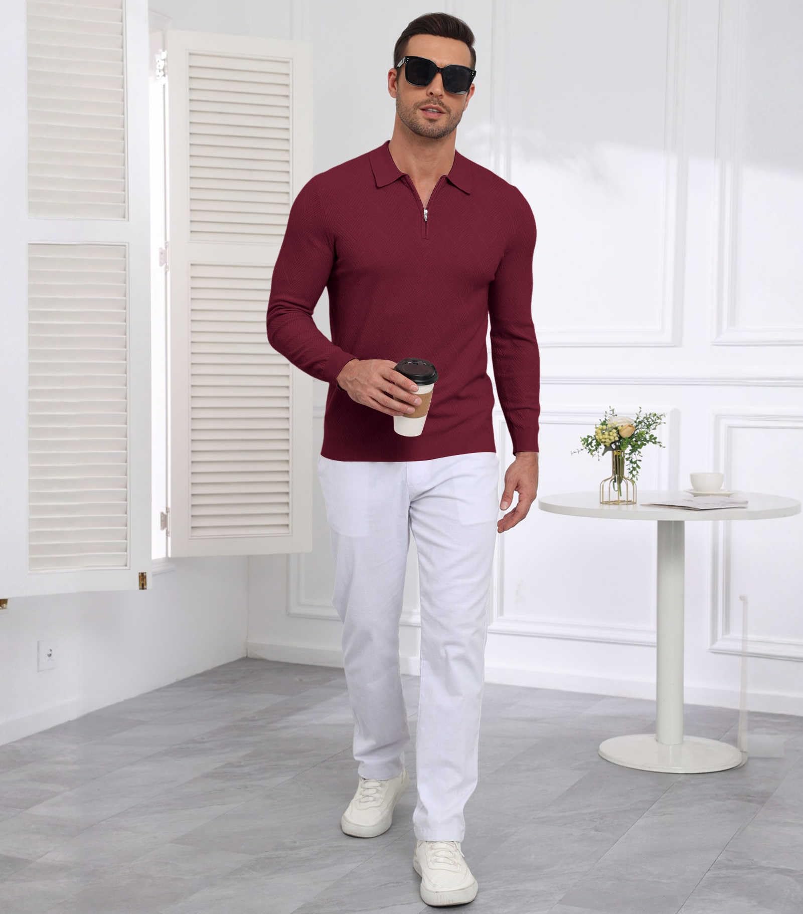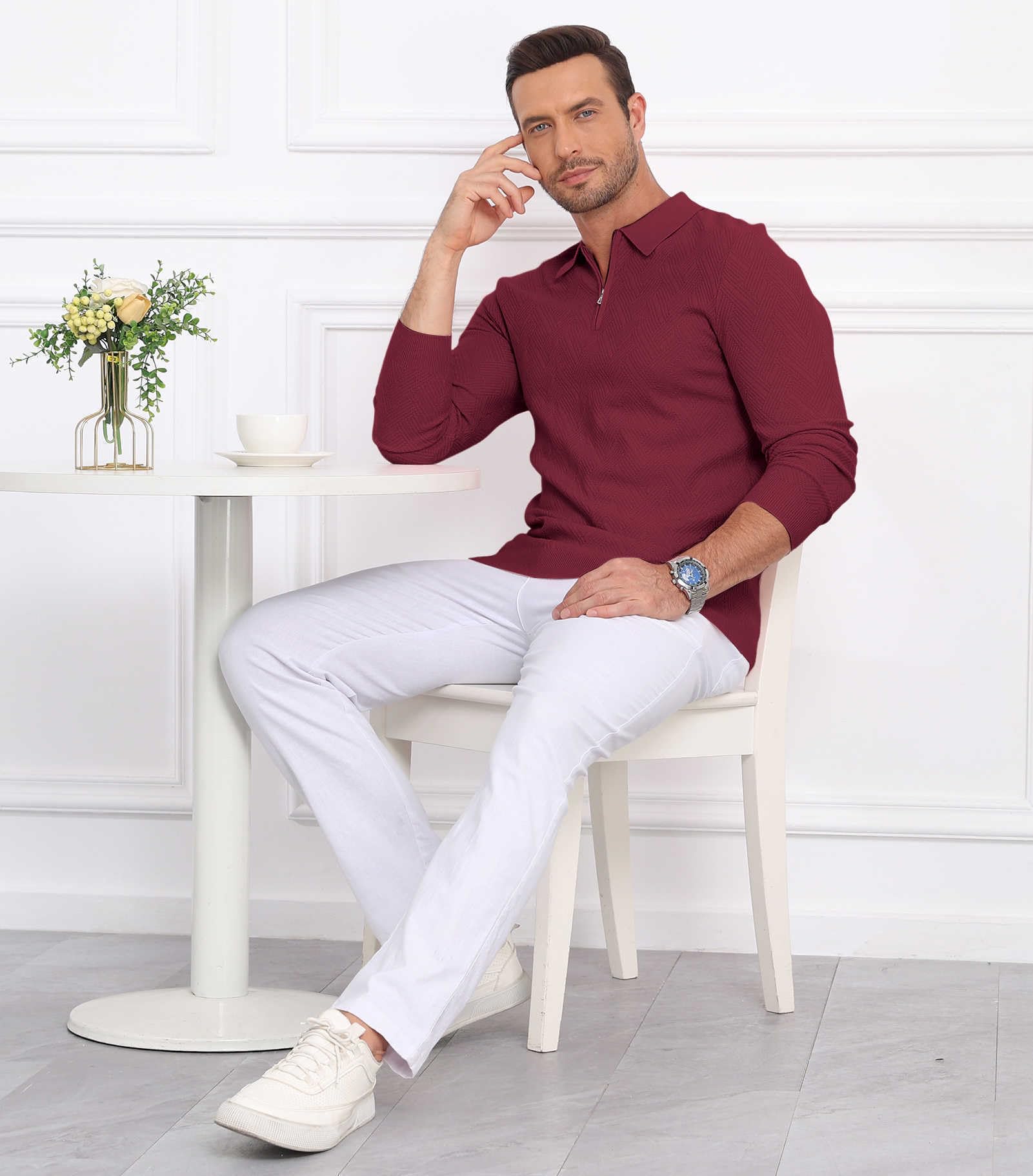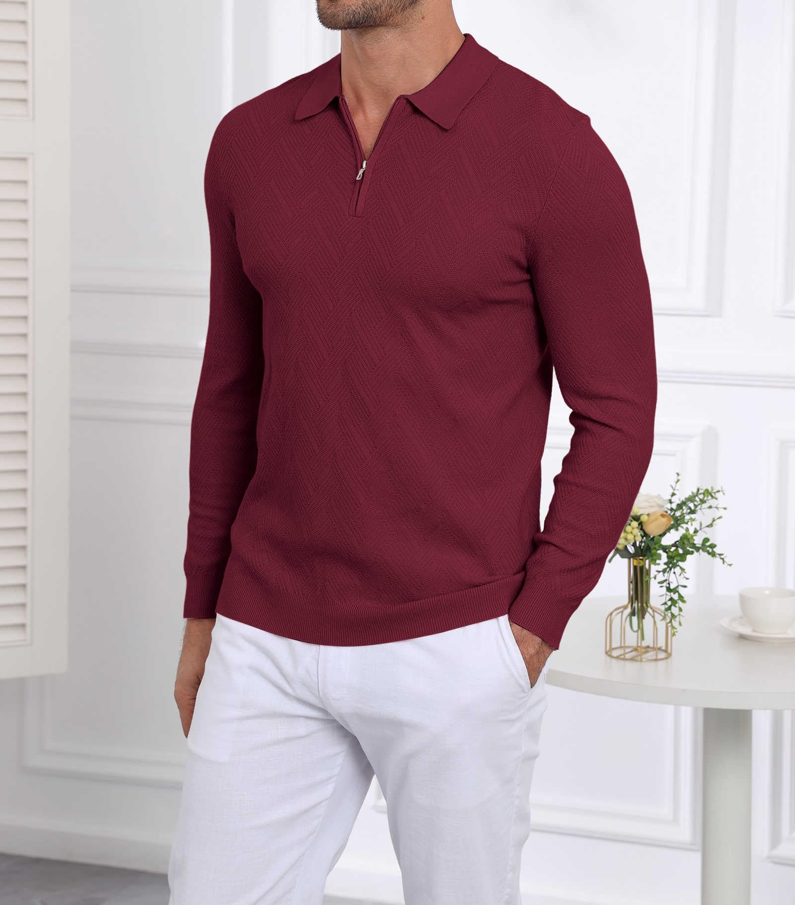 | Men's Slim Fit Polo Sweater Lightwe | Red | Large | 2 |