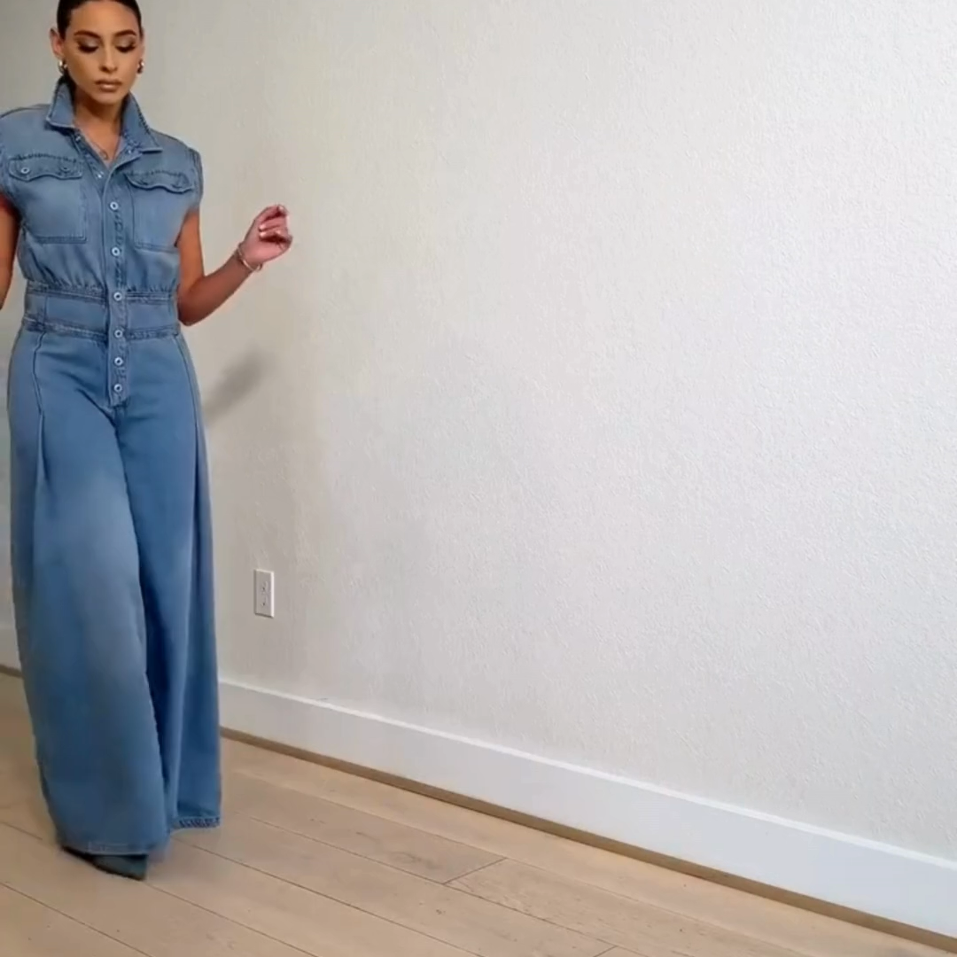Sleeveless Button Denim Wide Leg Jumpsuit
