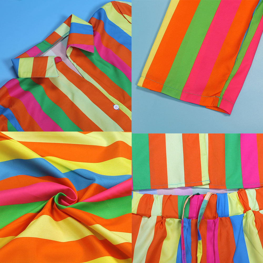 Colorful Printed Long Sleeve Shirt and Shorts Set