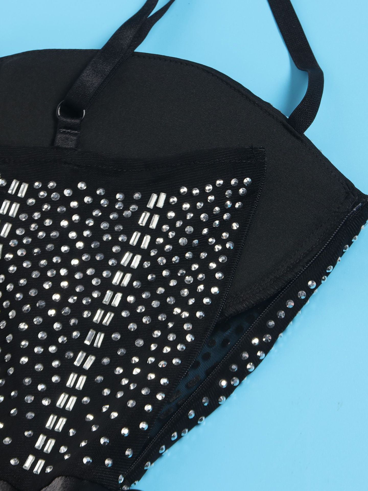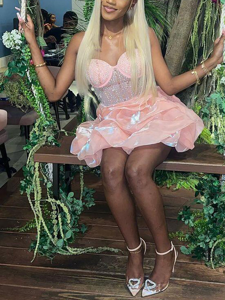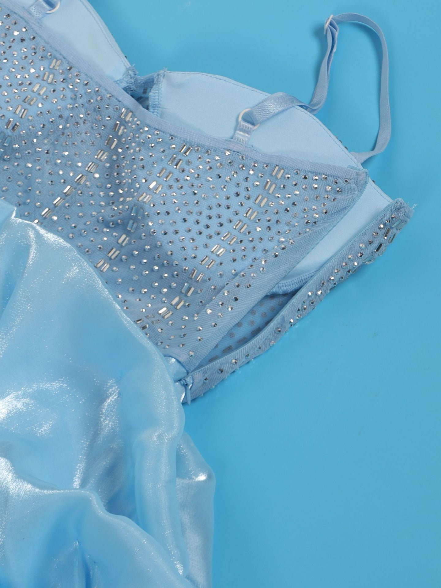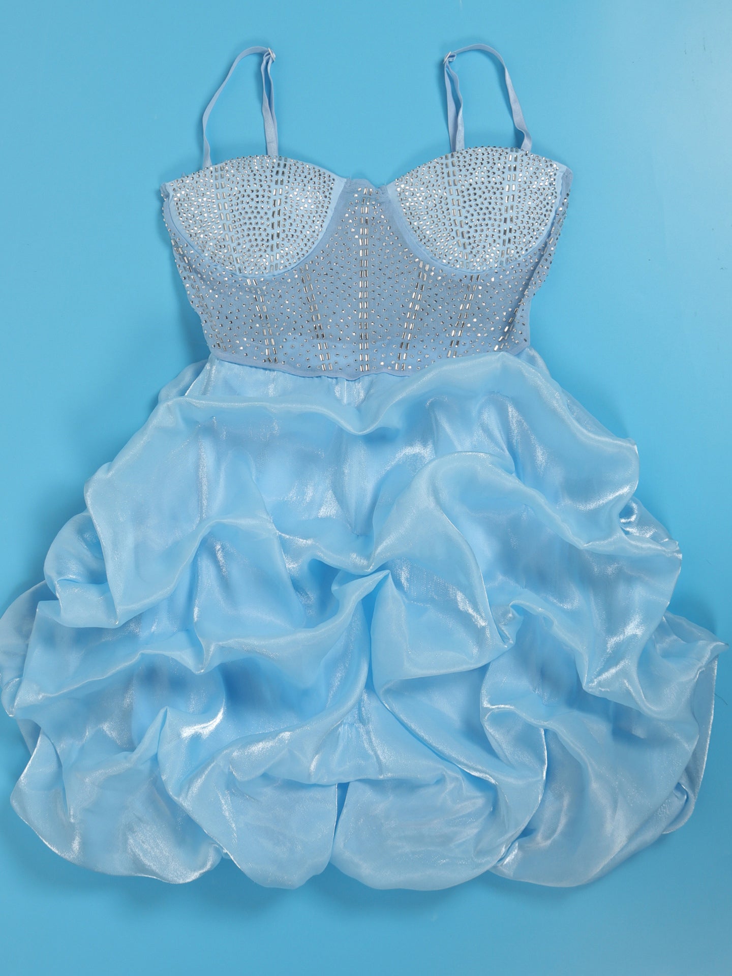 Rhinestone Spaghetti Strap Tulle Layered Dress